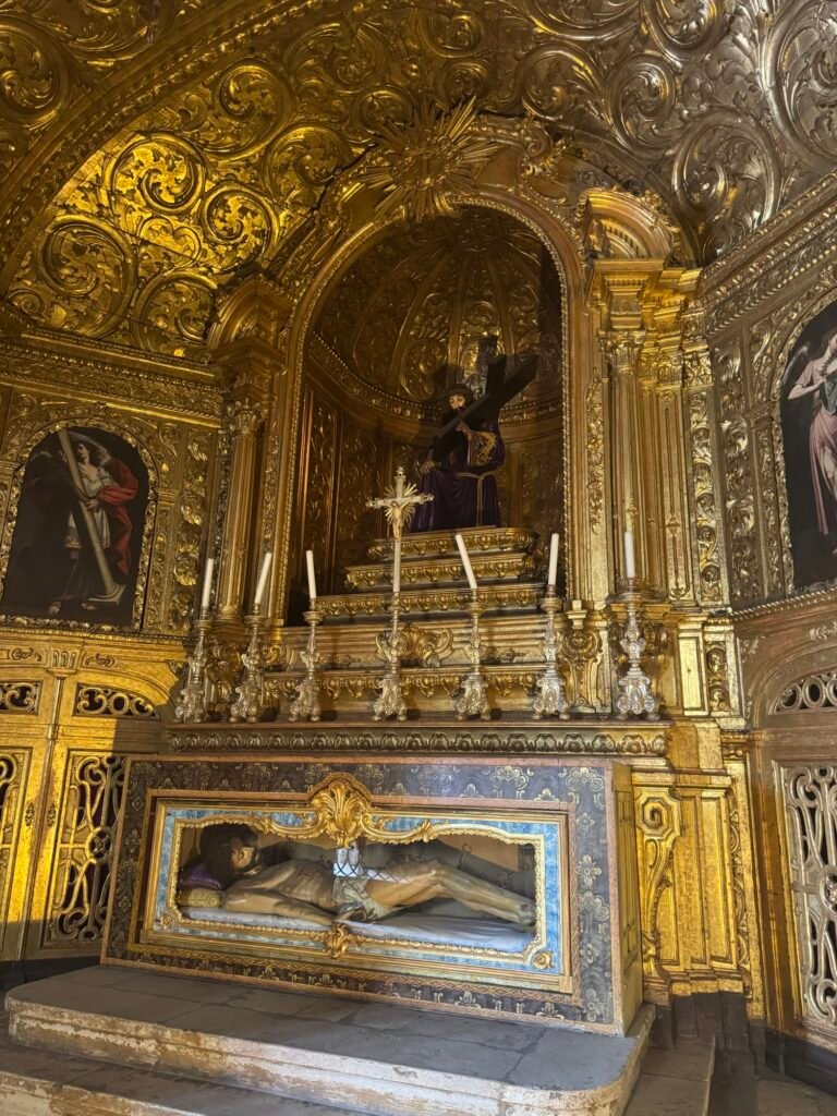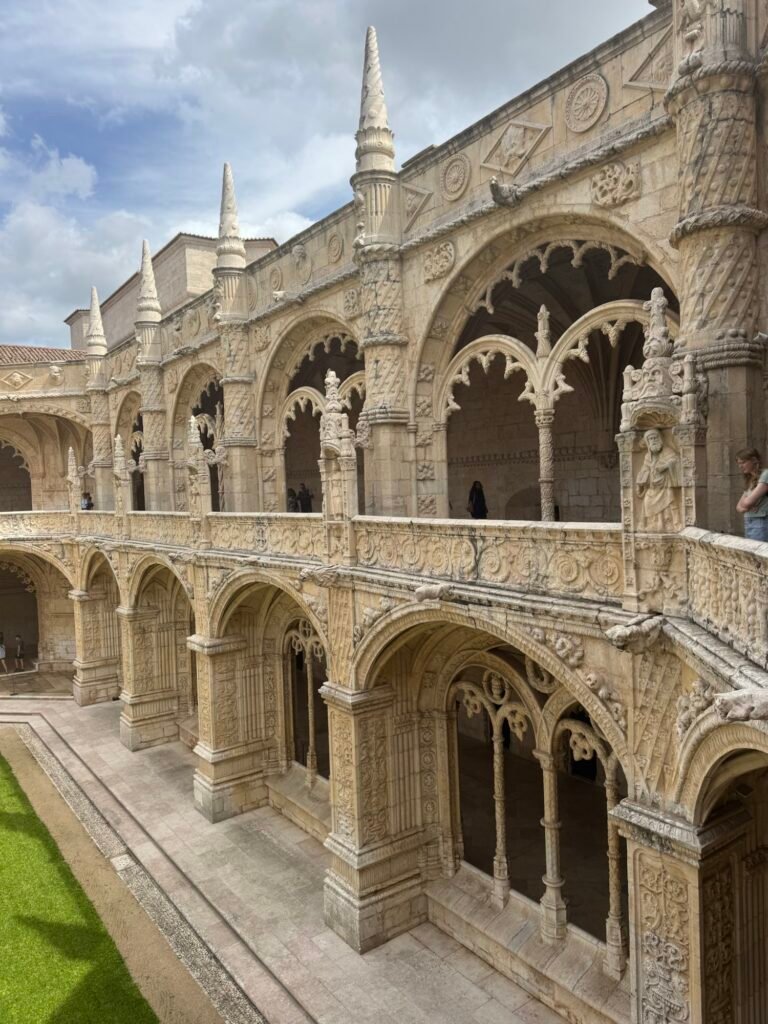 Built in the early 16th century under King Manuel I, the monastery was funded by wealth flowing in from overseas trade. That prosperity shows in every detail. This is Manueline architecture at its finest: maritime motifs, twisted ropes, coral-like carvings, and symbols of Portugal’s seafaring ambition worked delicately into stone. After paying the $20ish dollar entrance fee, I was excited for a day of quiet reflection.